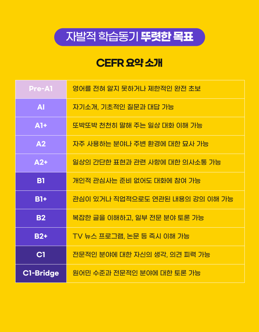 neo CEFR Certification은 유럽공통 언어평가 기준 CEFR과 깊이 관련되어 있습니다.